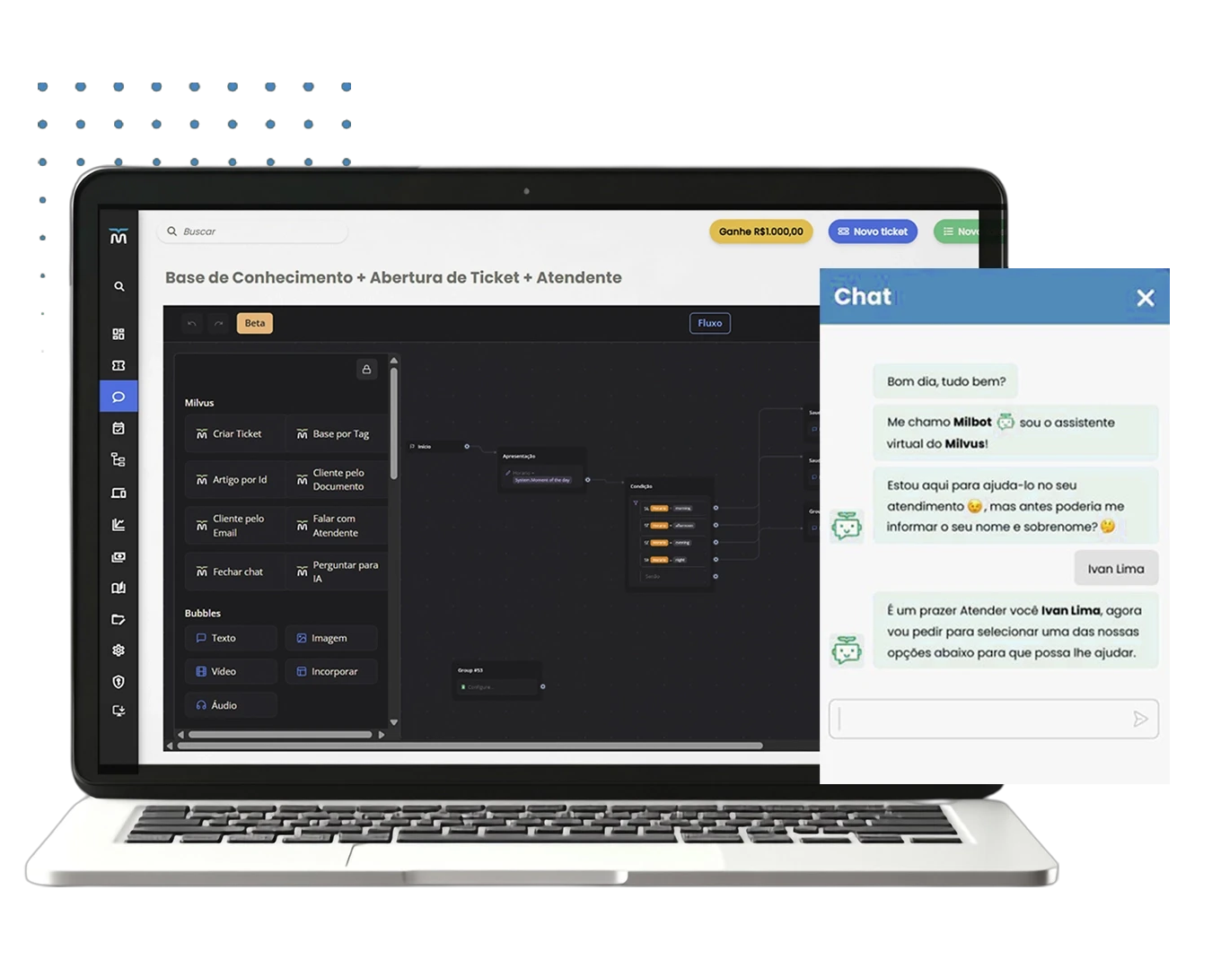 A Milvus traz clareza total do fluxo dos tickets, mostrando como as demandas caminham entre as principais etapas do atendimento. Você acompanha o volume a fazer, em atendimento e pausado, além de identificar tickets com última interação do cliente pendente e casos expirados. Isso facilita enxergar onde o trabalho está parado e o que precisa de ação imediata.