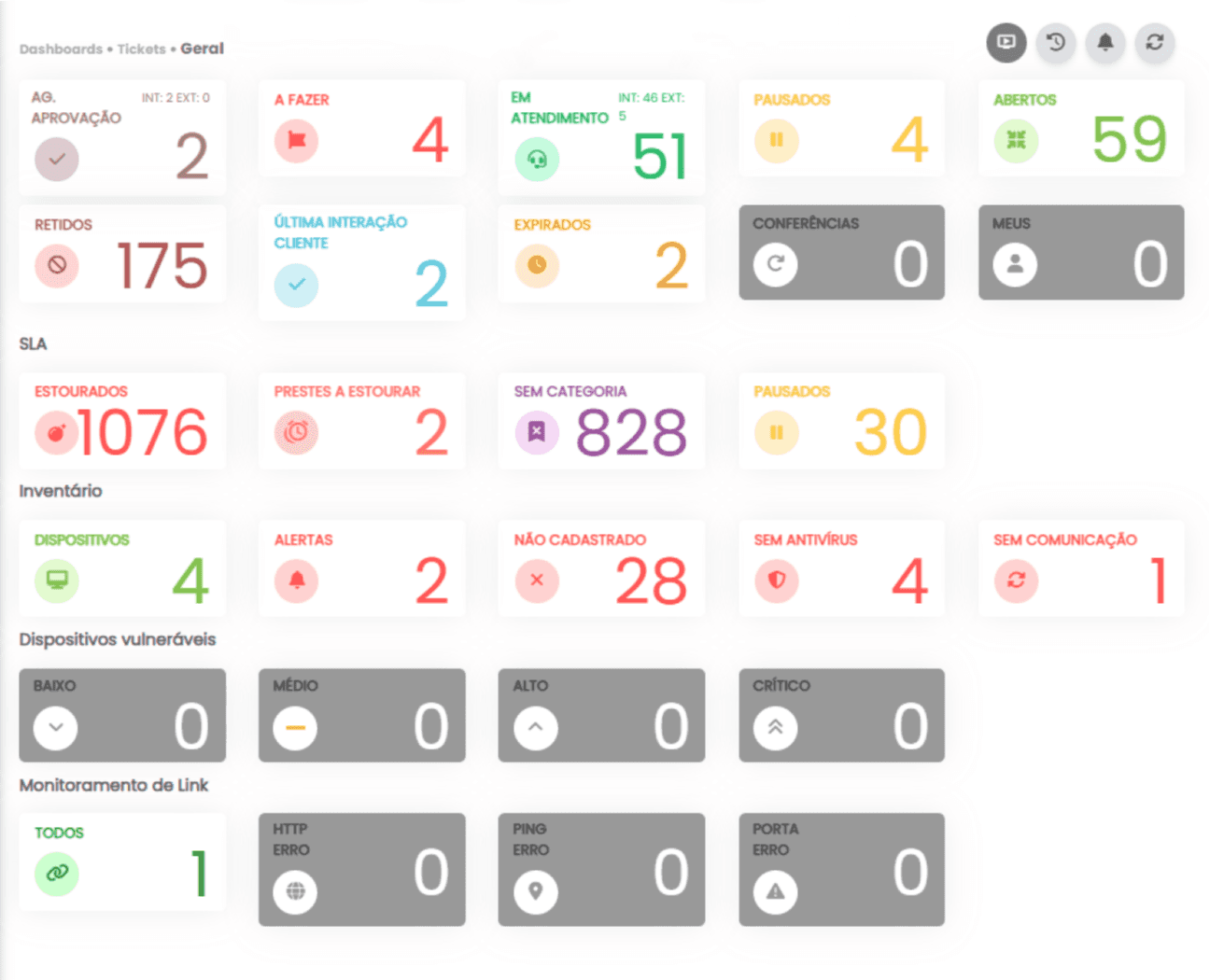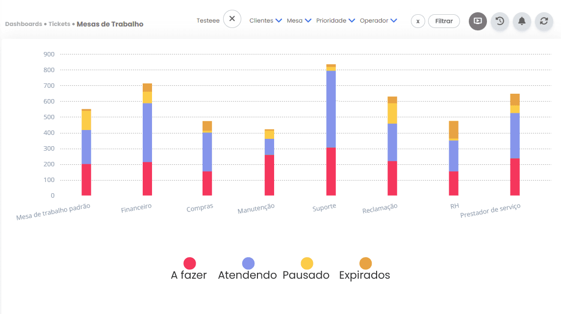 Tenha controle total do fluxo de tickets e visualize onde estão os maiores volumes e travamentos.