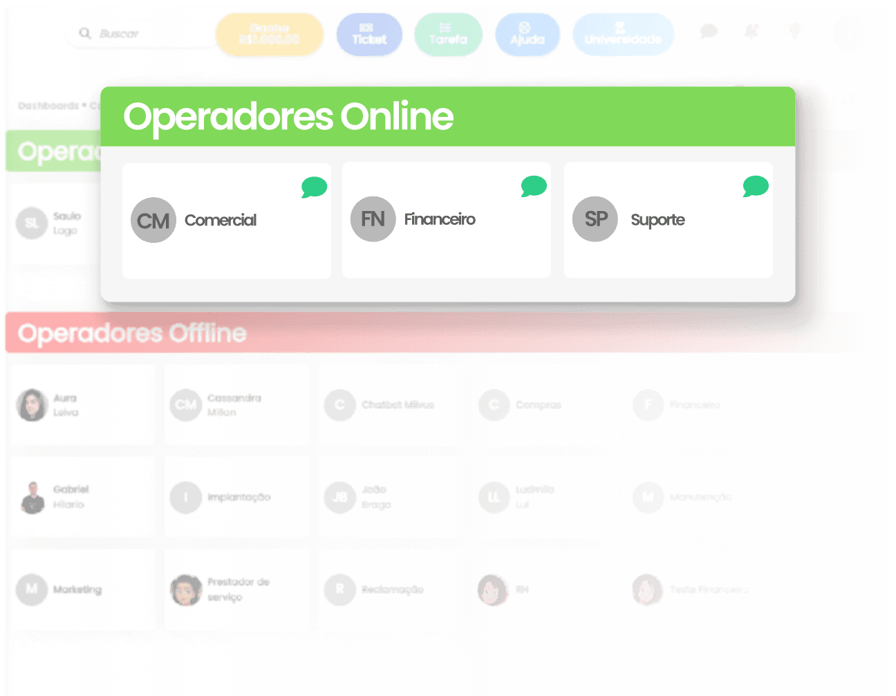 Tenha visibilidade imediata da disponibilidade do seu time. No Status do Operador, a Milvus mostra quantos operadores estão online e quantos estão offline, facilitando o controle da escala e o acompanhamento da operação em tempo real.