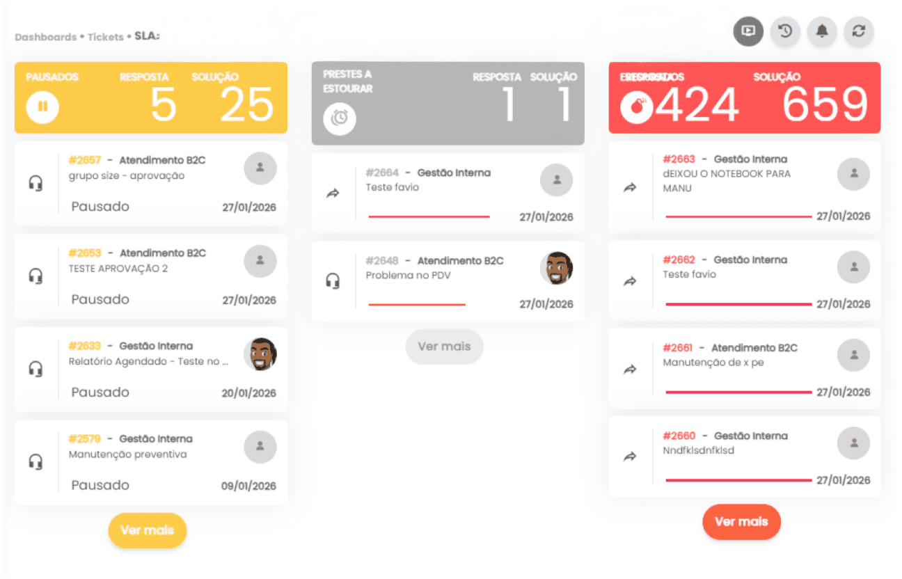 Monitore SLAs com clareza, identifique riscos e mantenha previsibilidade na operação.