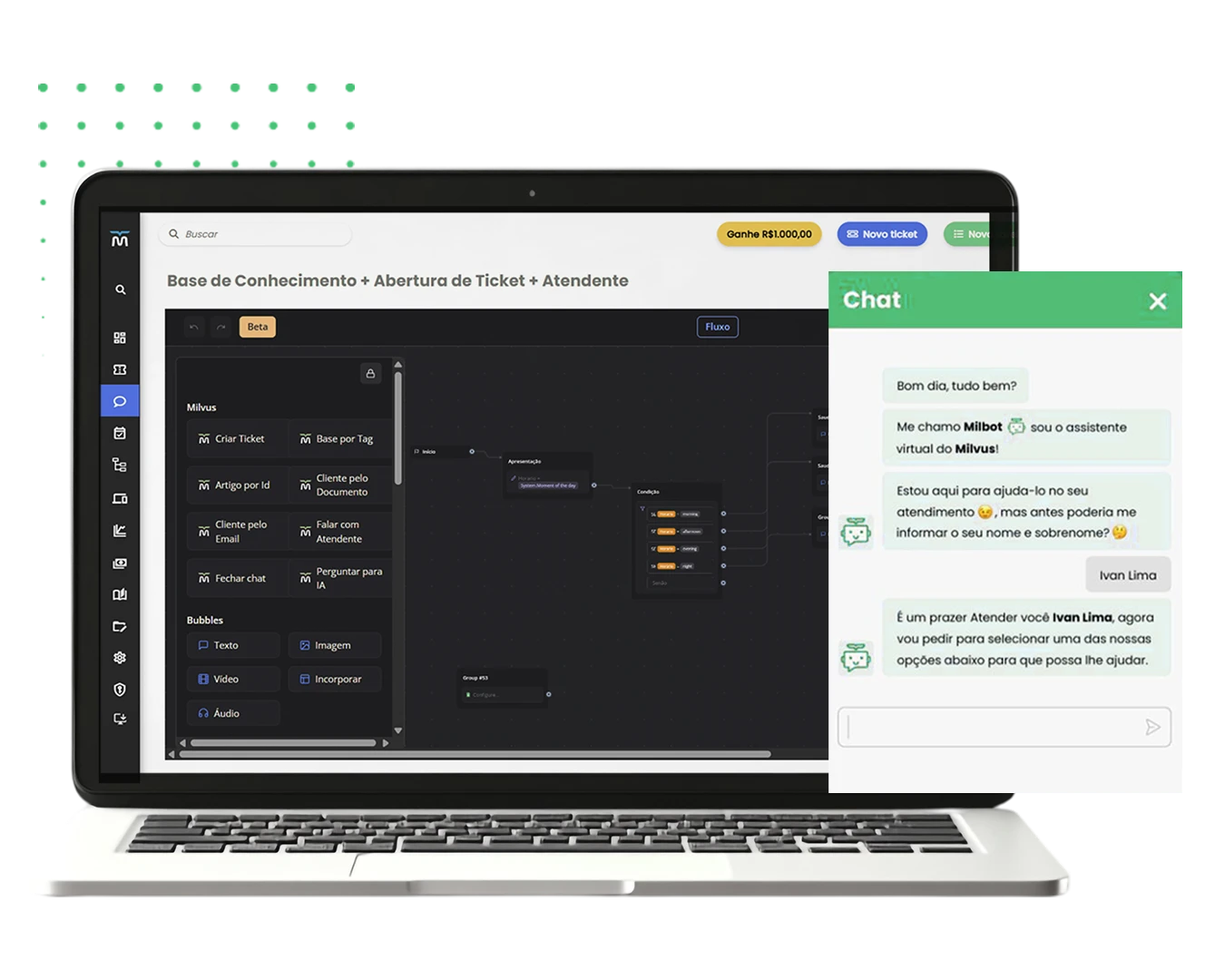 O Milvus unifica o atendimento e evita que demandas “sumam” em canais soltos. Chamados, solicitações e interações ficam organizados em um fluxo único. Solicitações de e-mail, portal Web, App, Whatsapp, formulários e até API são recebidas e gerenciadas no mesmo ambiente. Isso melhora o controle do time e a experiência de quem solicita suporte.